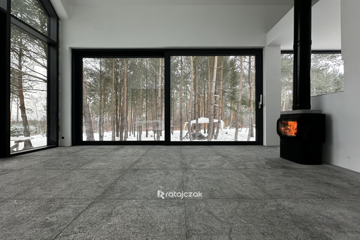 Podłoga z kamienia naturalnego, marmurowe ściany w łazience, granitowy parapet.Ogrzewanie zapewnia nowoczesny piec żeliwny typu koza marki Jotul z aktywnym izolowanym kominem oraz wentylacją.