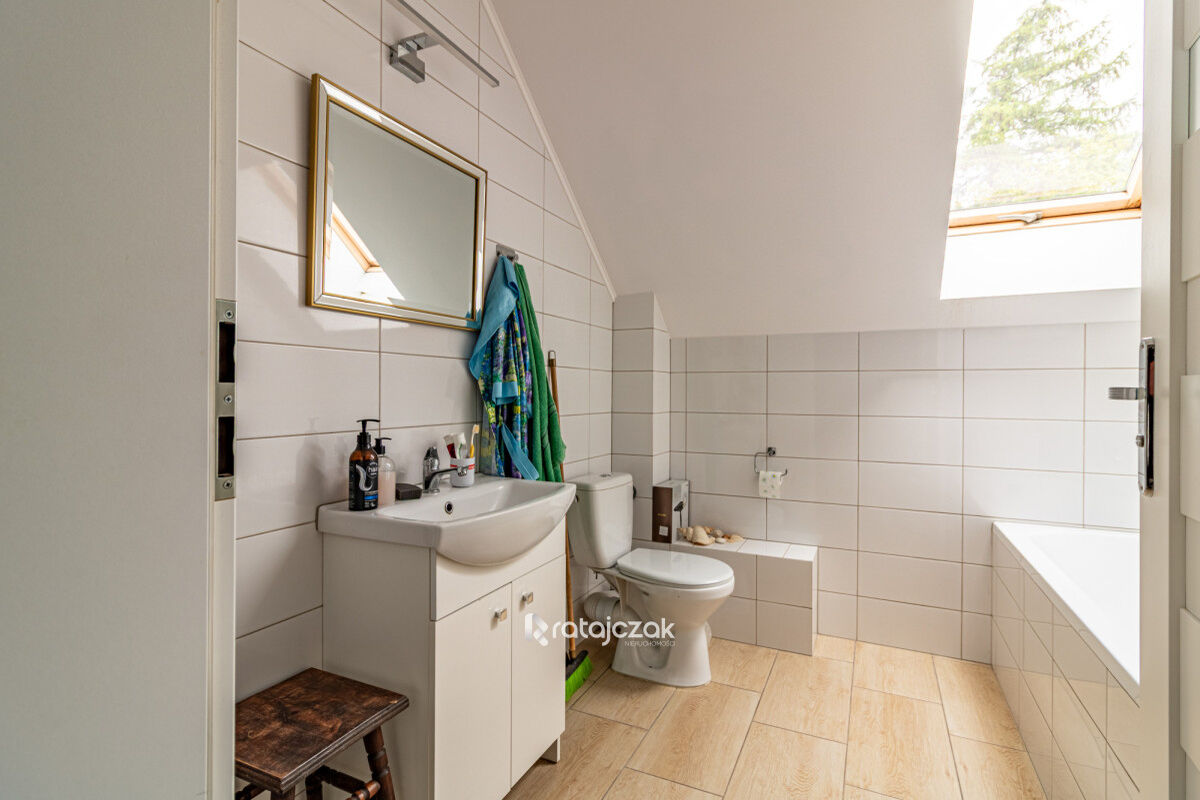 • piętro: trzy ustawne pokoje oraz druga łazienka z wanną.