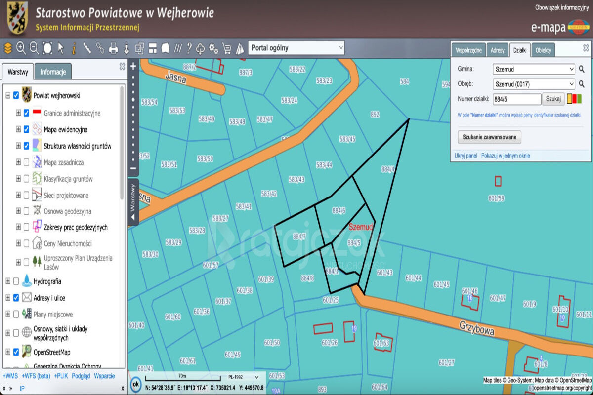 Sprzedawane działki zlokalizowane są dokładnie na końcu ulicy Grzybowej w Szemudzie. Miejsce to gwarantuje spokój i ciszę za sprawą, ponieważ za ulicą Grzybową znajdują się łąki, lasy i tereny niezabudowane z dojazdem drogami prywatnymi.