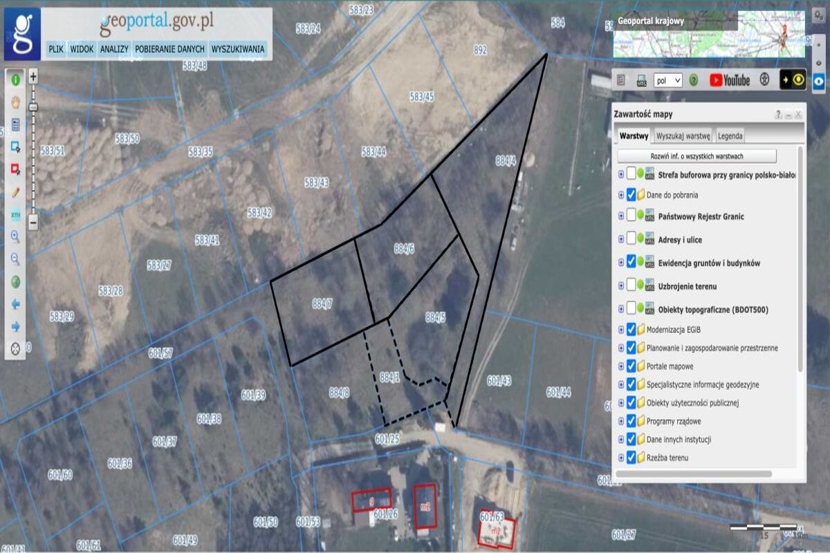 Działki są pochyłe w kierunku południowym, na chwilę obecną częściowo zalesione, ogrodzone od jednej strony (prawa strona działki 884/4) z dojazdem drogą utwardzoną gruntową.