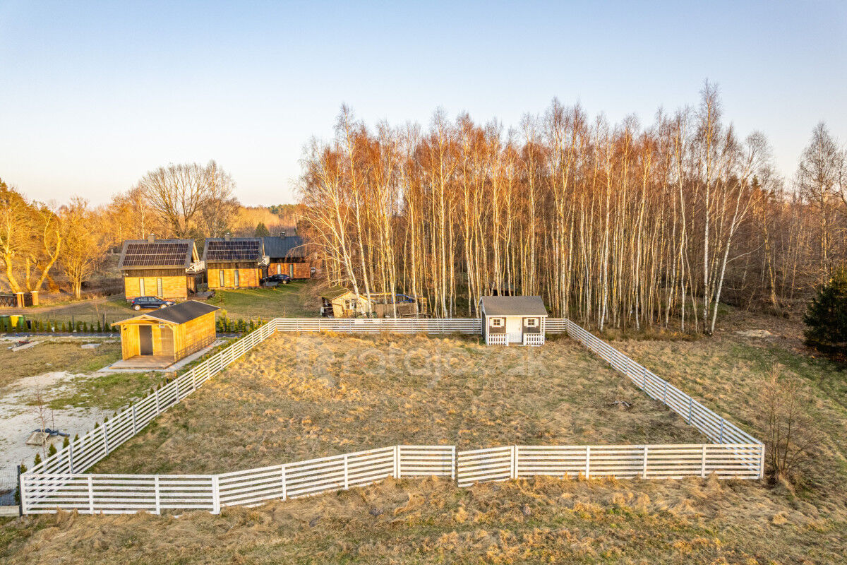 Działka o powierzchni 629m2 jest dobrze nasłoneczniona. Teren płaski w kształcie zbliżony do prostokąta o wymiarach 28m x 24m x 26m x 24m nie zalesiony, porośnięty trawą. Działka od strony wschodniej graniczy ze ścianą malowniczego brzozowego lasu, ogrodzona białym płotem drewnianym z każdej strony. Z uwagi na czyste powietrze, dużą wilgotność i bardzo dobre nasłonecznienie działka ma idealne warunki do uprawy wszelkiego rodzaju roślinności. Zapewniony dostęp do drogi publicznej.
