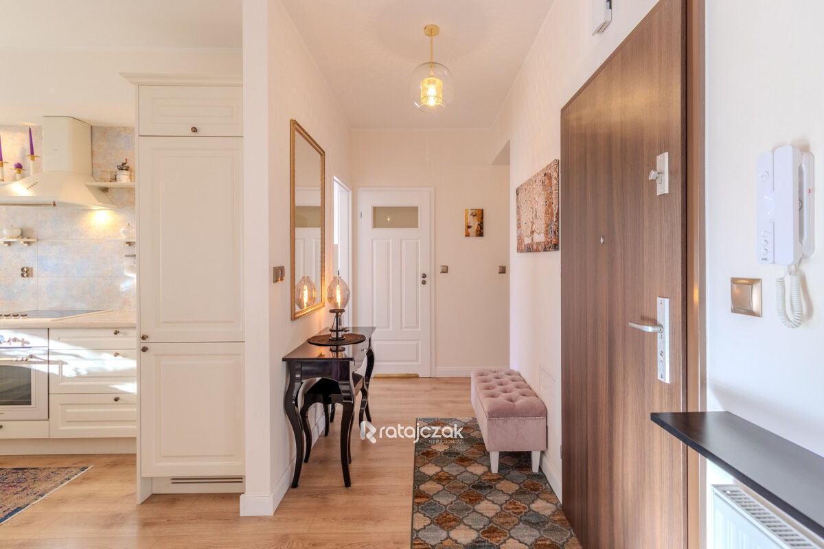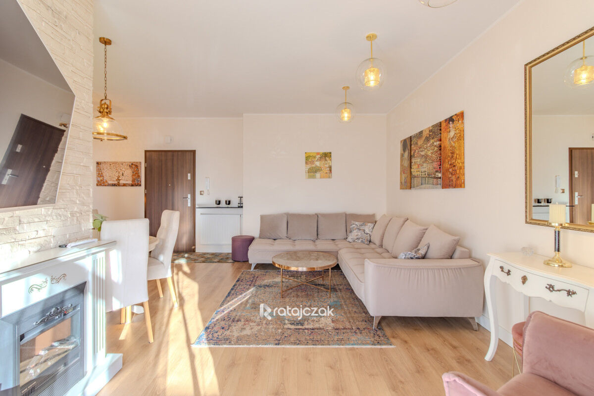 Mieszkanie w pełni umeblowane, gotowe do wejścia nie wymagające żadnych dodatkowych nakładów finansowych, wykańczane w 2021r. Wnętrze zaprojektowane z dbałością o każdy detal. Na podłogach wodoodporne panele wysokiej klasy ścieralności AC6, w całym mieszkaniu energooszczędne okna 3-szybowe. Styl wykończenia to nowoczesna elegancja z akcentami premium, która dzięki wysokim sufitom daje poczucie ogromnej przestrzeni.